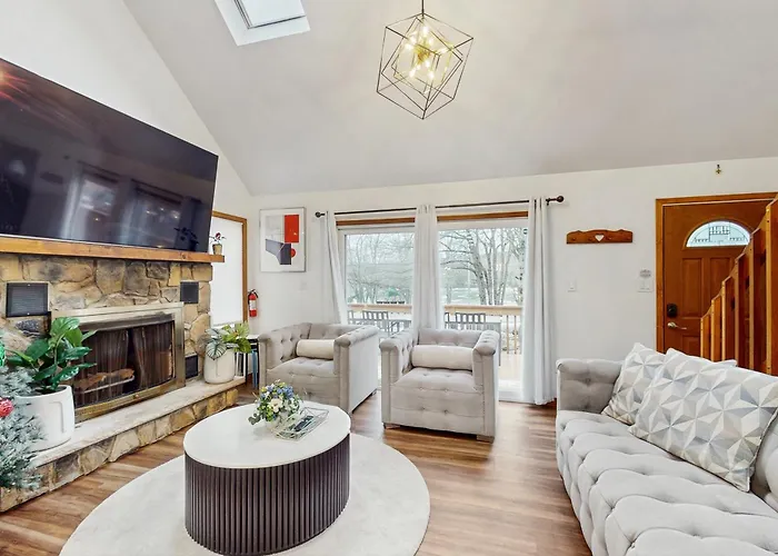 Cette villa Lakeside Escape Briar Crest Woods bénéficie d'un emplacement au bord de la mer, à environ 10 minutes en voiture du lac Big Boulder, et propose à ses clients de se détendre dans un jacuzzi et un bain chaud. Vous pourrez faire du cyclisme, du ping-pong et de la pêche dans cette villa en front de mer, situé à environ 3 km du Pocono Raceway.